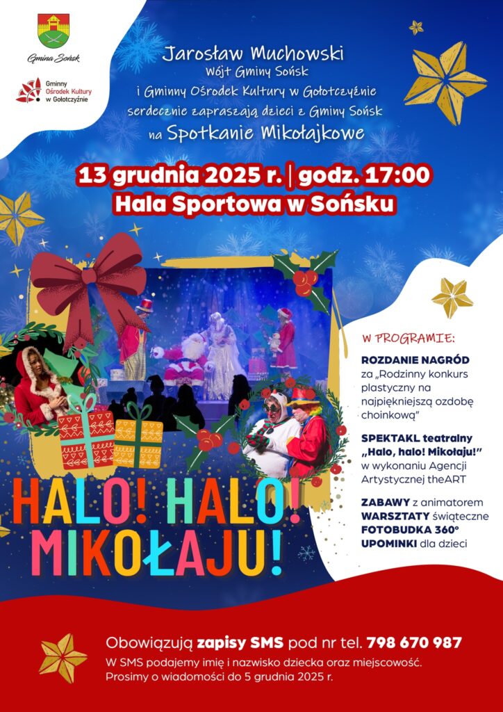 Wspólnie z Jarosław Muchowski Wójt Gminy Sońsk serdecznie zapraszamy wszystkie dzieci na wyjątkowe spotkanie mikołajkowe! ![]()